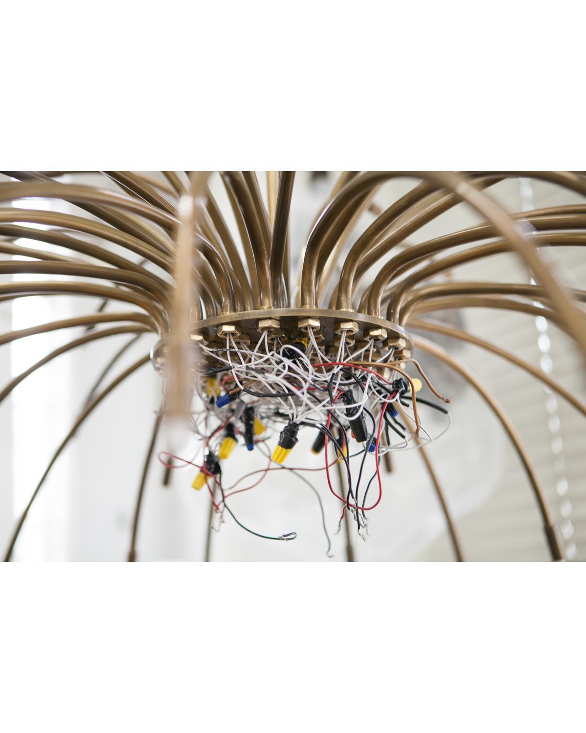 From the Remains Archive. This chandelier was reproduced, but at 3X the original size, from a photograph of a 1970s original. Each arm terminates in a low-voltage LED lamp. Commissioned for a New York residence. Our Archive Collection consists of the best examples of previous custom projects & historic fixtures from our collection. They are made available as inspiration for recreation or inclusion in custom projects.