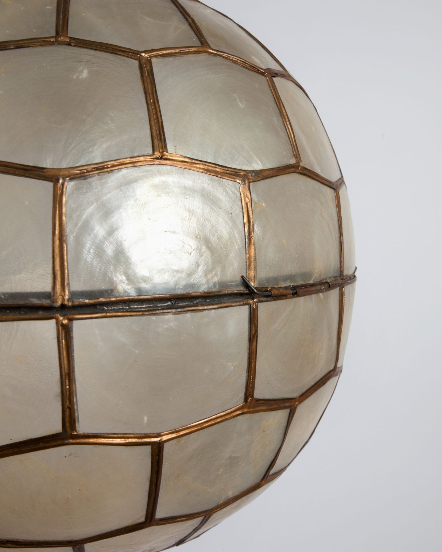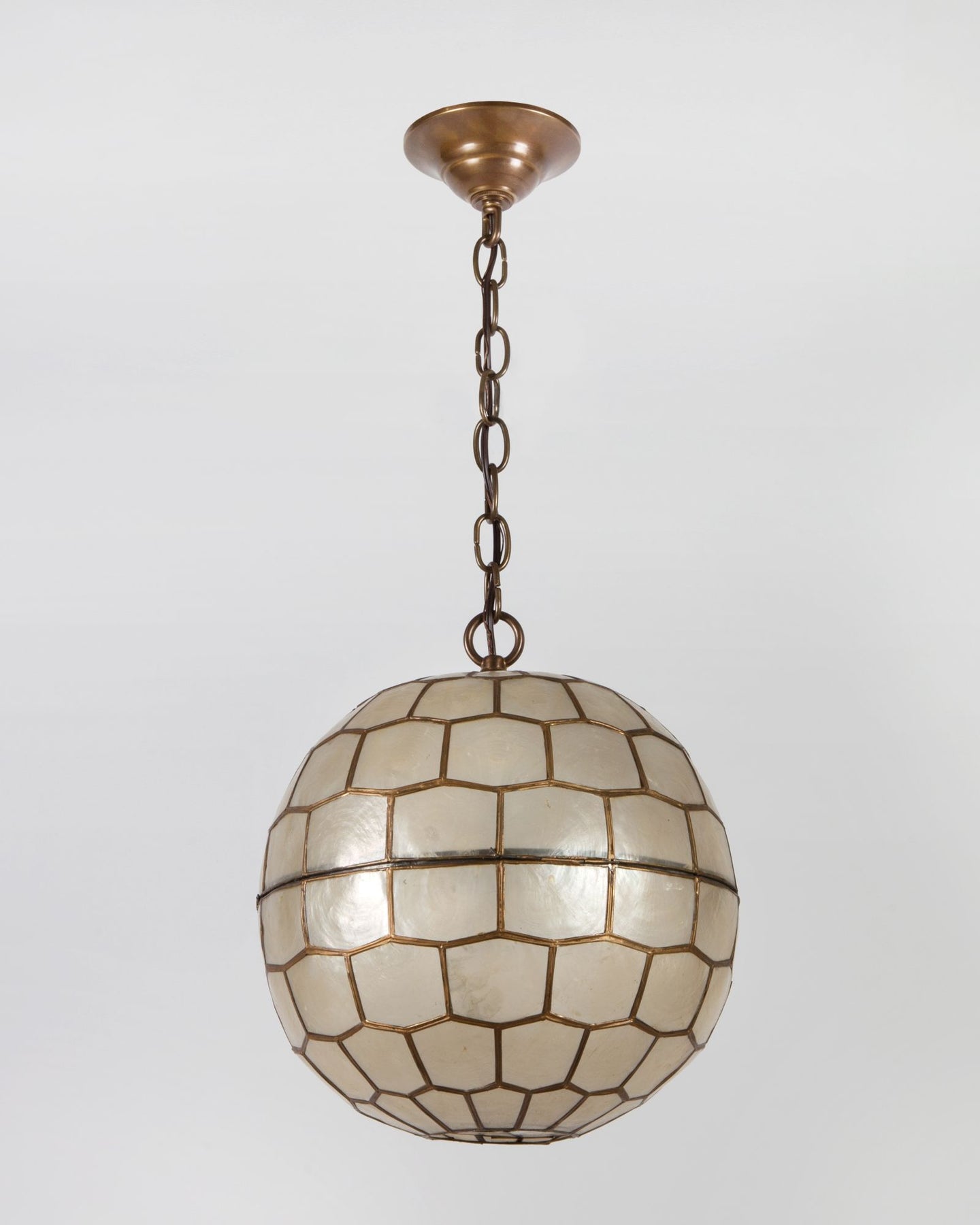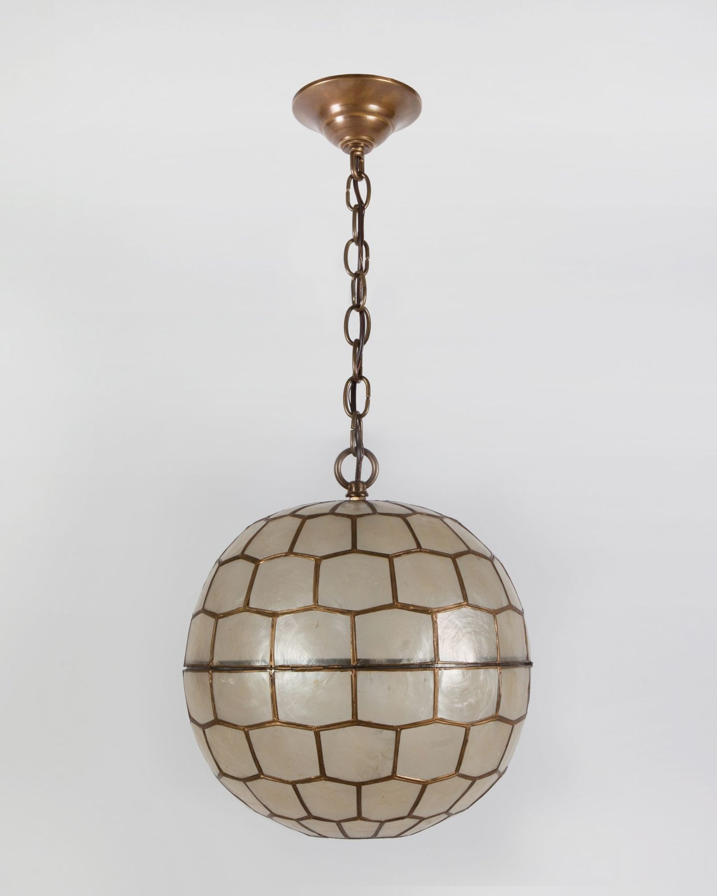 From the Remains Archive. A leaded capiz shell pendant with octagonal framework and darkened brass fittings. Our Archive Collection consists of the best examples of previous custom projects & historic fixtures from our collection. They are made available as inspiration for recreation or inclusion in custom projects.