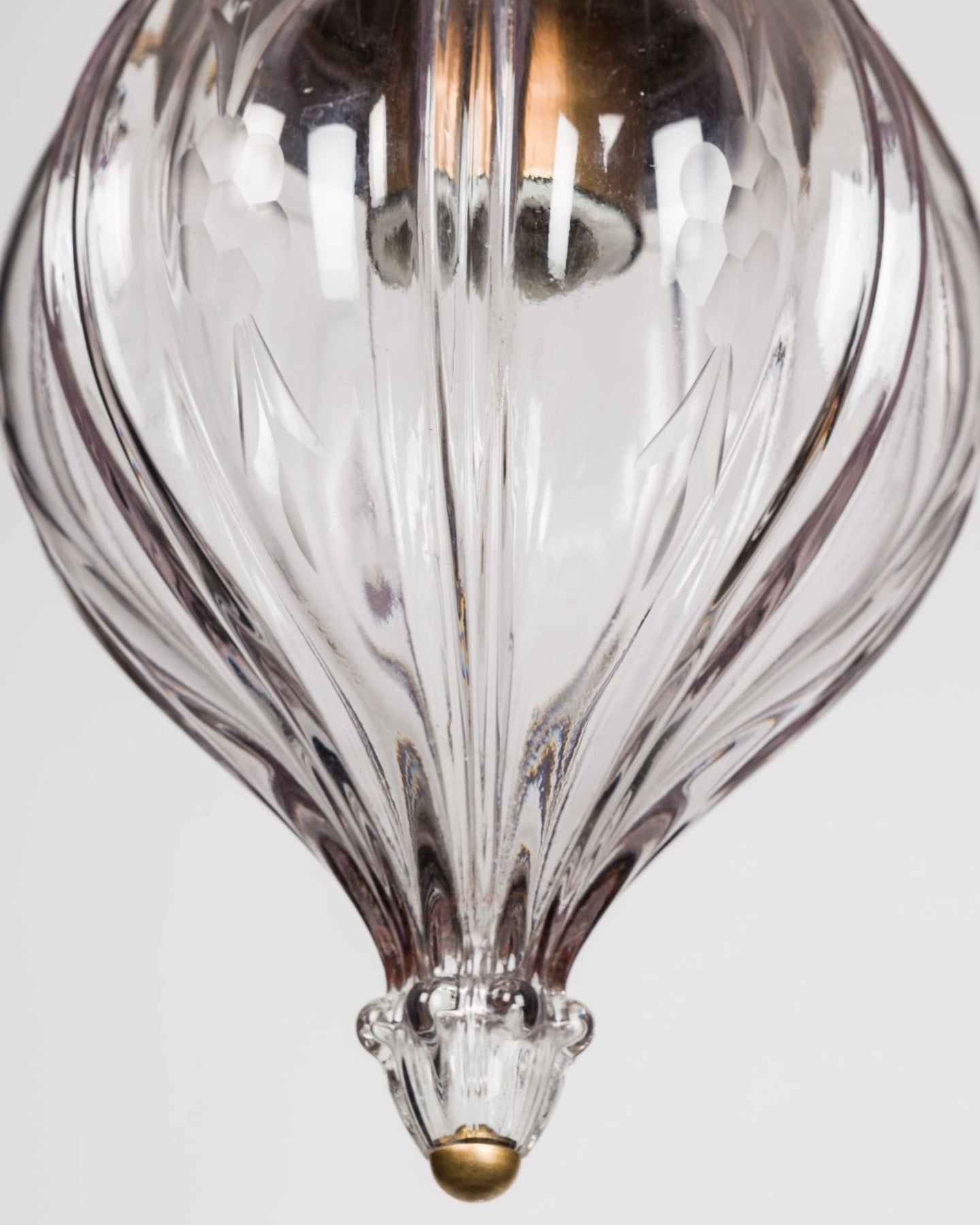 From the Remains Archive. An antique mold-blown ribbed and wheel-cut glass flush mount with darkened brass fittings. Our Archive Collection consists of the best examples of previous custom projects & historic fixtures from our collection. They are made available as inspiration for recreation or inclusion in custom projects.