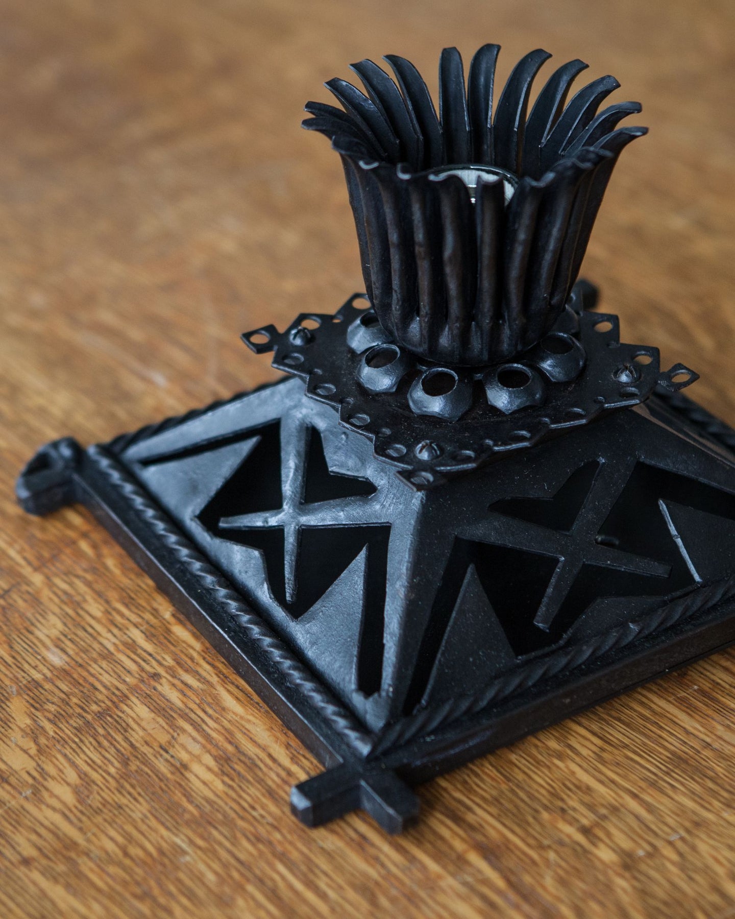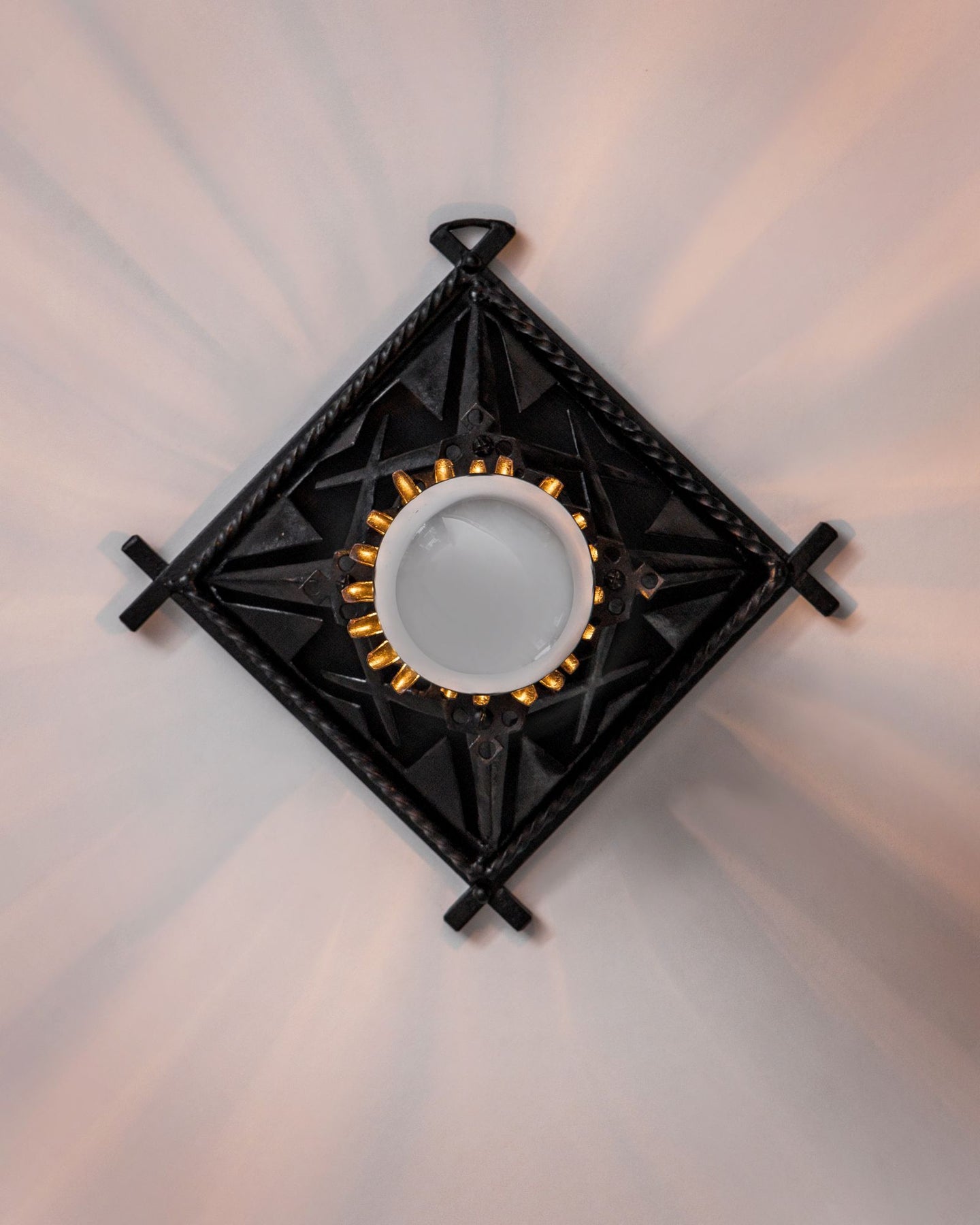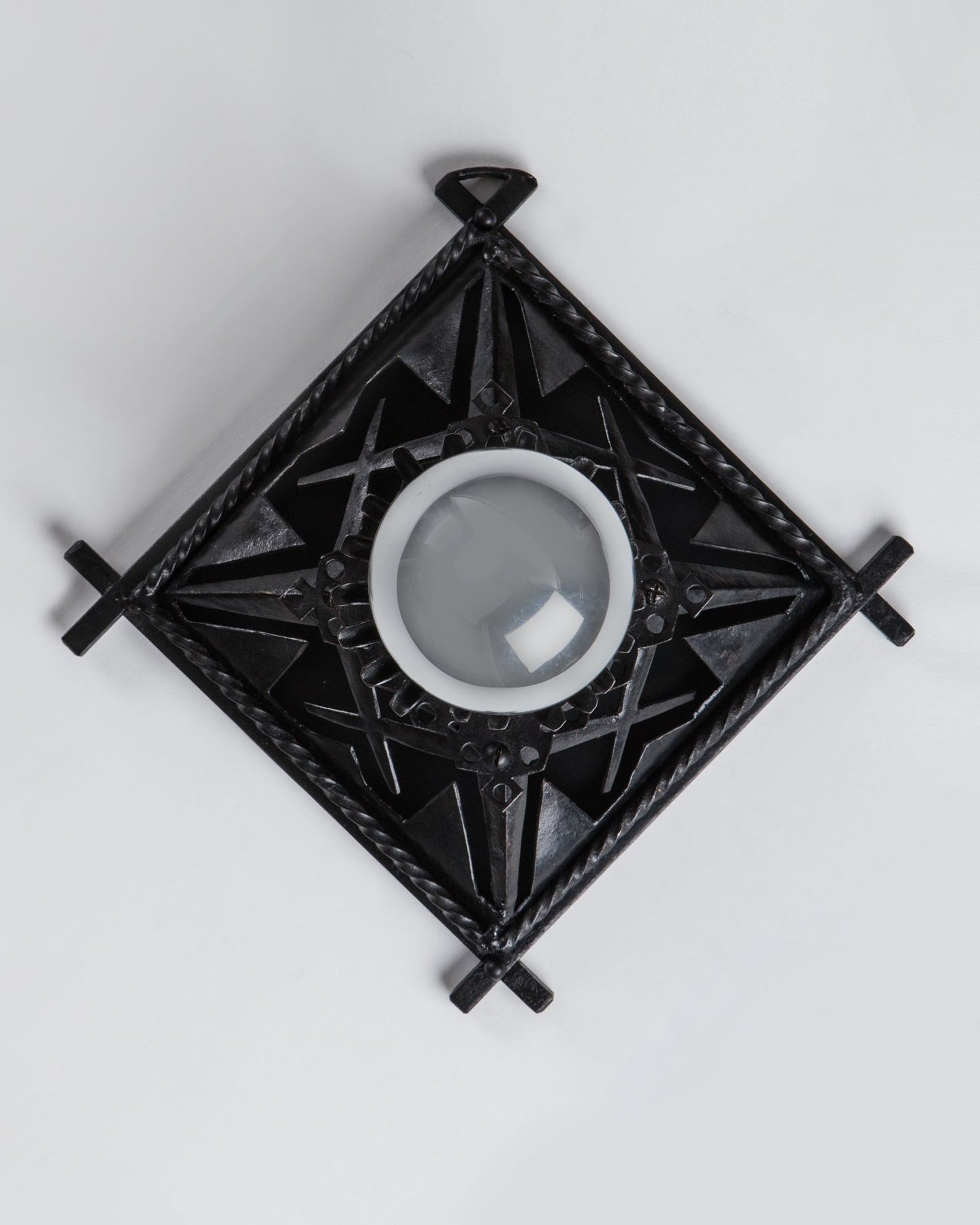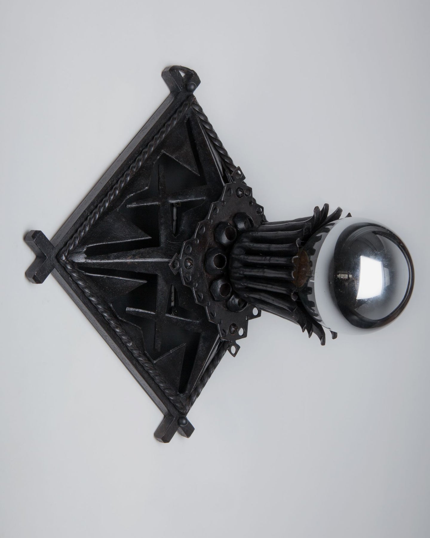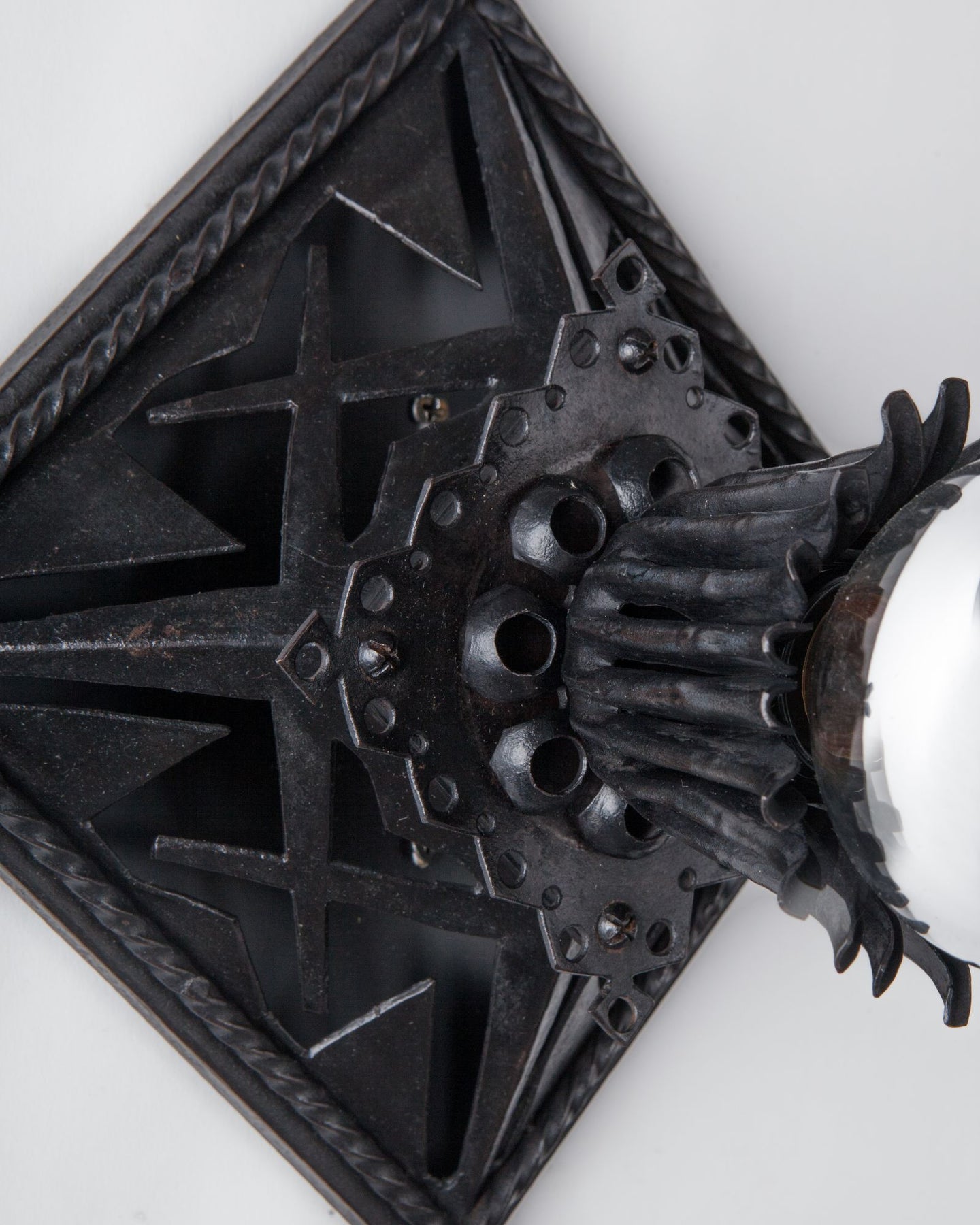 From the Remains Archive. A vintage Italian single-light sconce in pierced and wrought iron. In the original blackened iron finish. Our Archive Collection consists of the best examples of previous custom projects & historic fixtures from our collection. They are made available as inspiration for recreation or inclusion in custom projects.