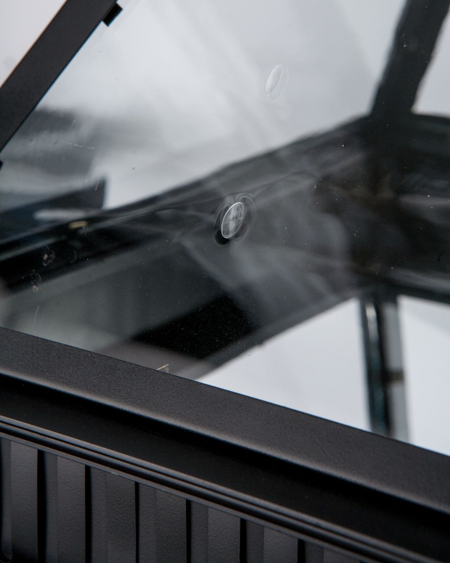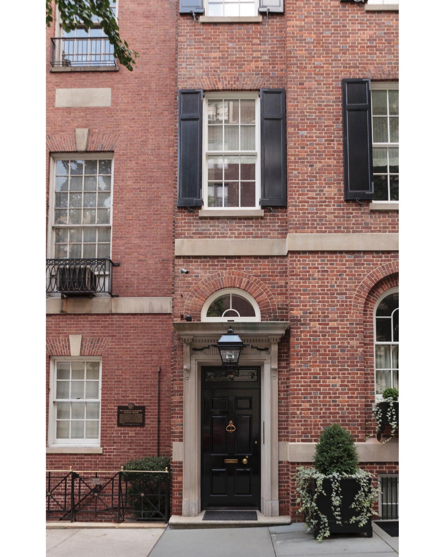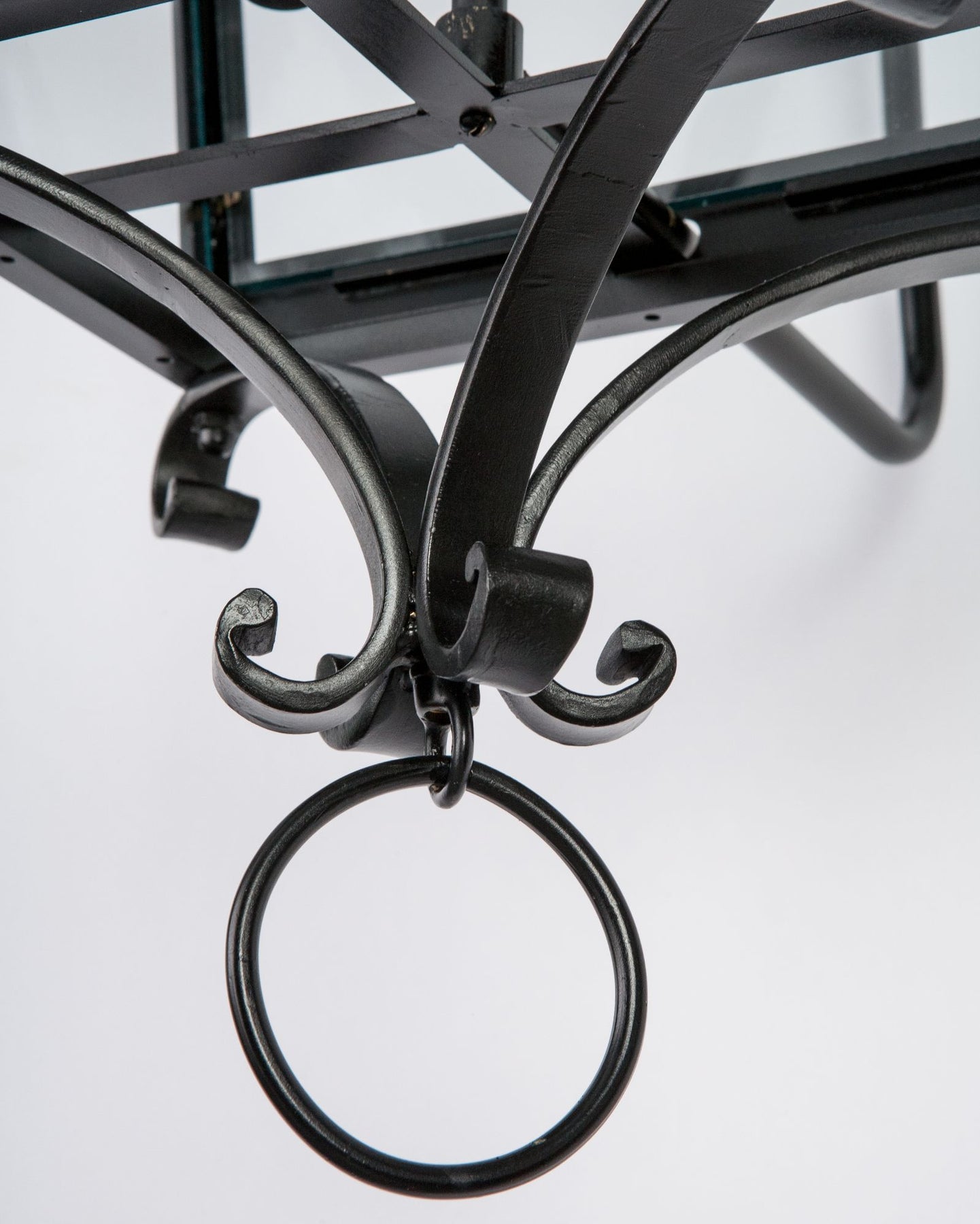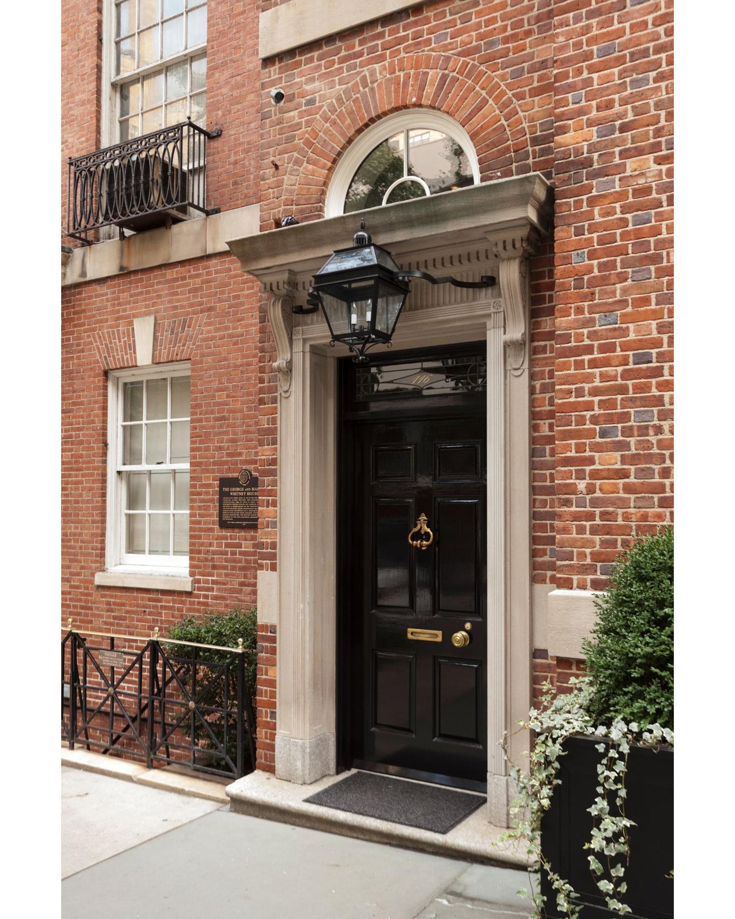 From the Remains Archive. A traditional wall lantern with "mustache" brackets in wrought bronze in a blackened finish and glazed with clear restoration glass. Commissioned for a New York residence. Our Archive Collection consists of the best examples of previous custom projects & historic fixtures from our collection. They are made available as inspiration for recreation or inclusion in custom projects.